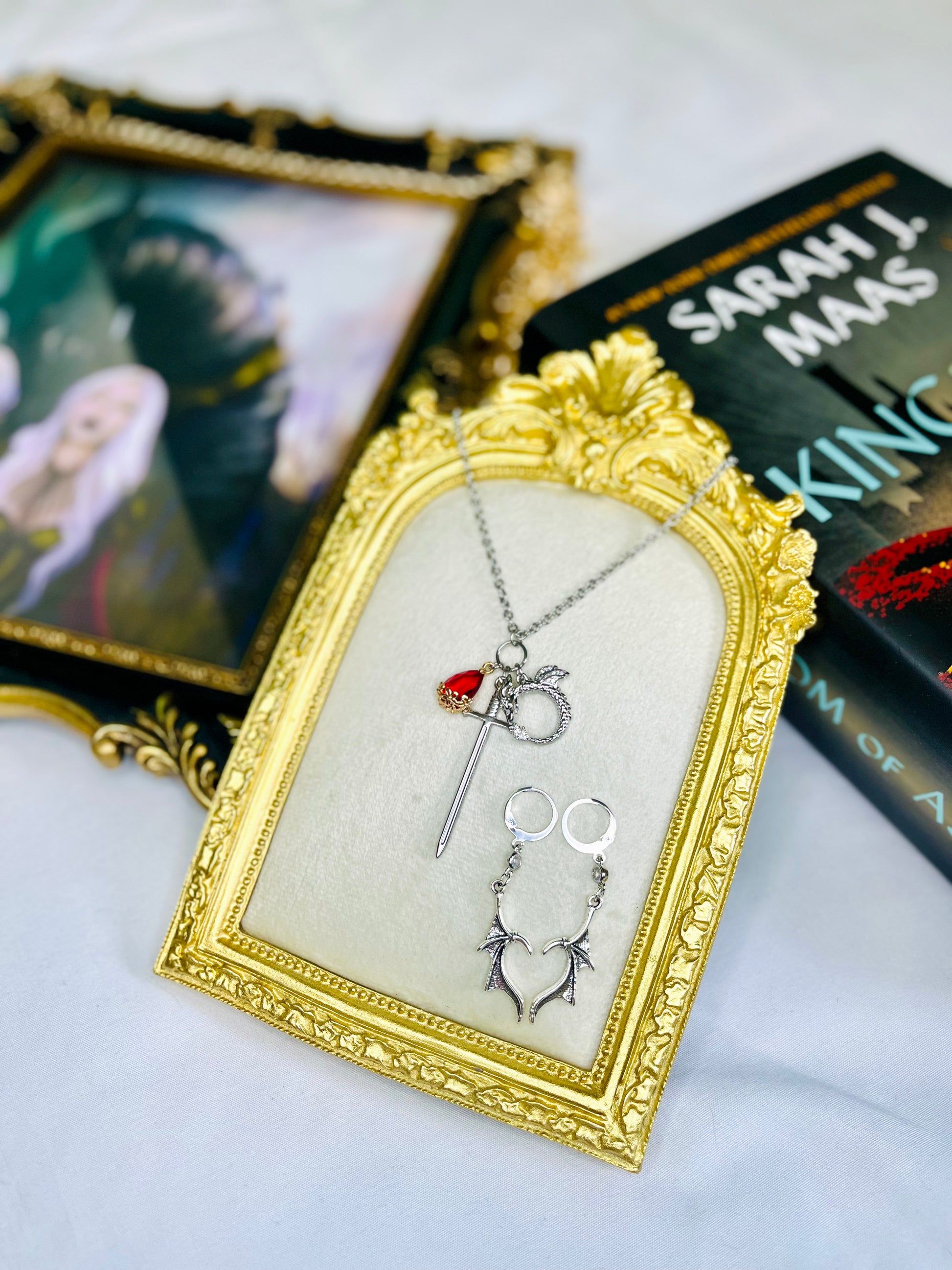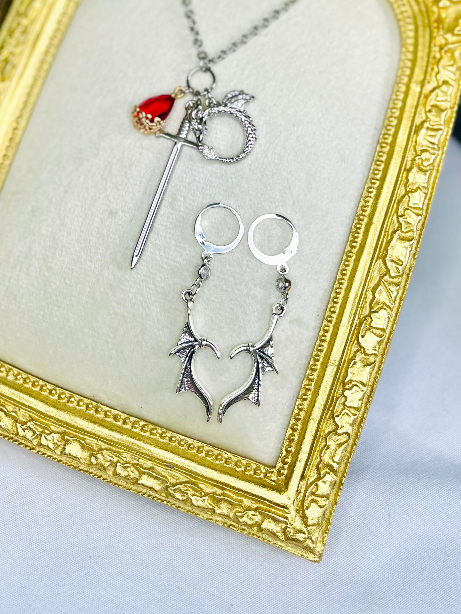 Enamel "Abraxos" wings Inspired Earrings from Throne of Glass Series w/ cubic zirconia connector on Stainless Steel Hypoallergenic Huggie Hoops
