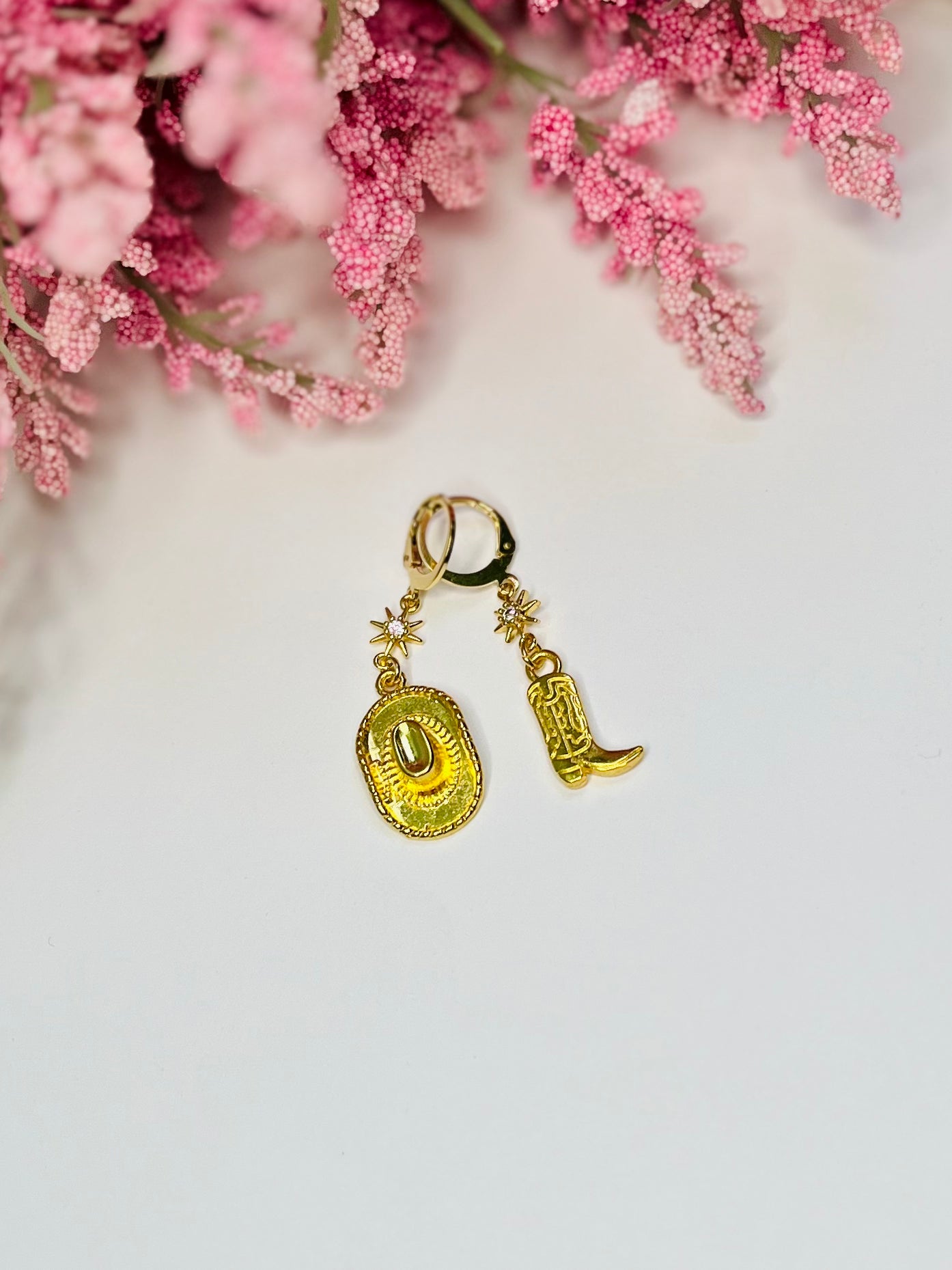 Gold plated cowboy hat & boot charm on 18k gold plated cubic zirconia star connector charms