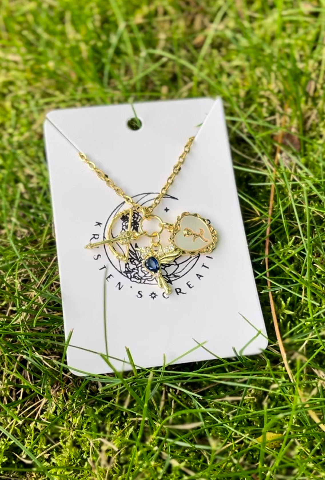 Hunger Games Inspired Mockingjay Cluster Necklace 18K Gold Plated 18in chain