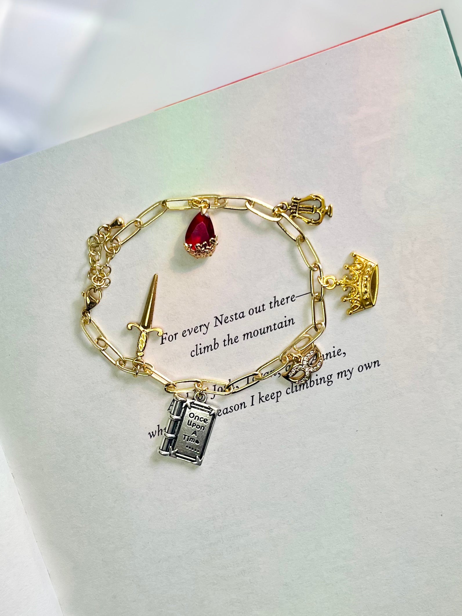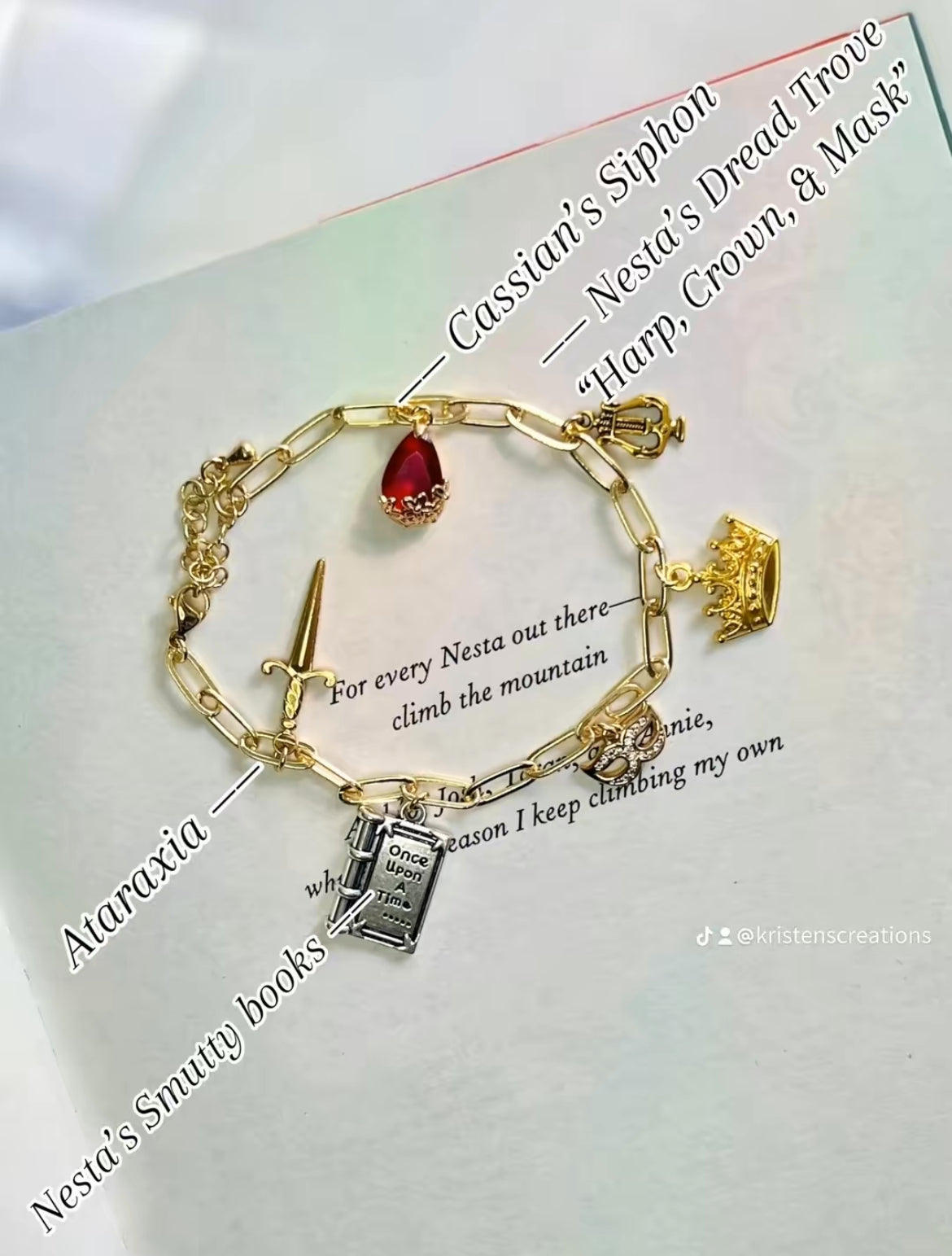 A Court of Silver Flames Inspired Charm Bracelet 18K Gold Plated featuring Nesta's Dread Trove