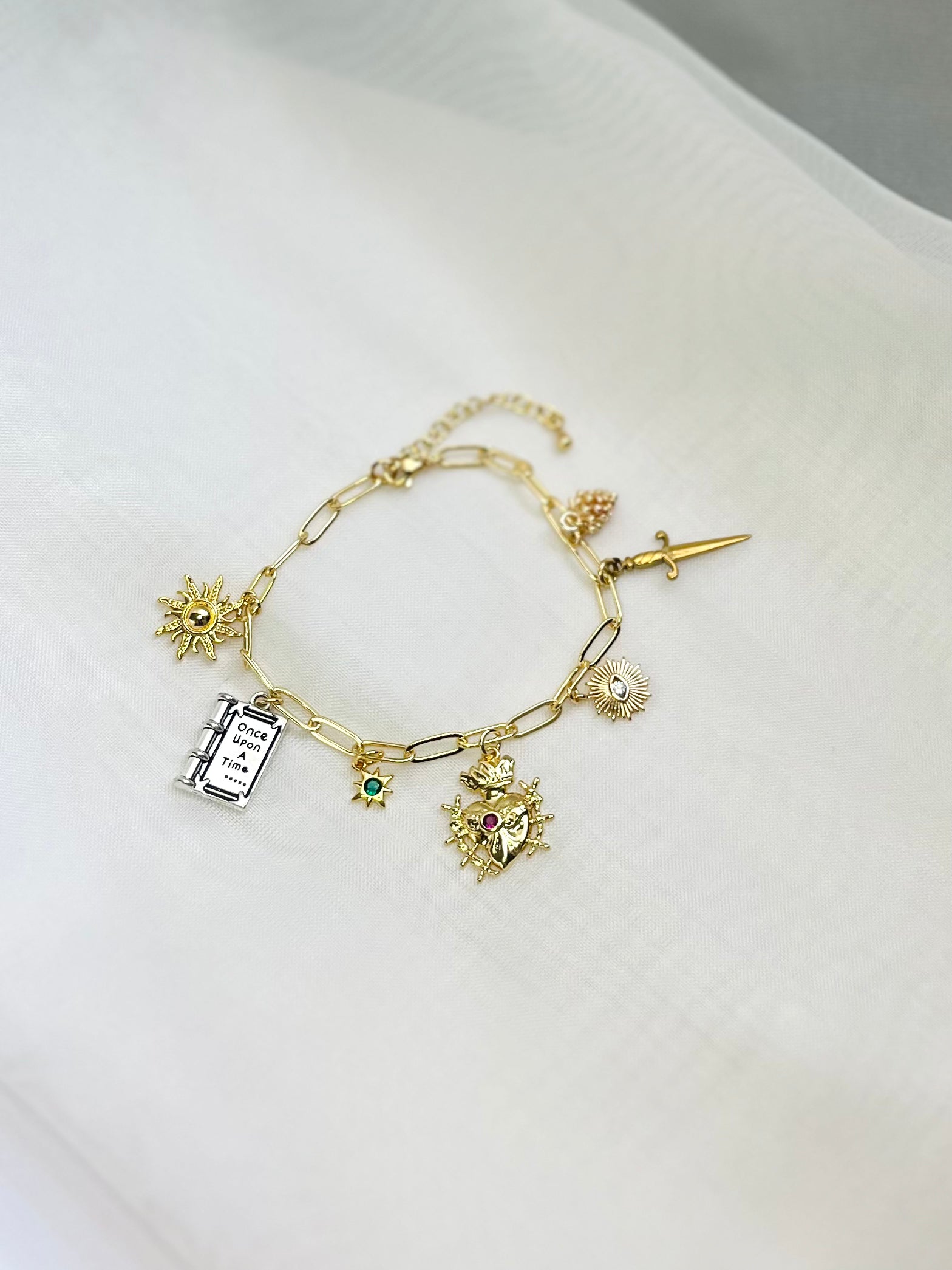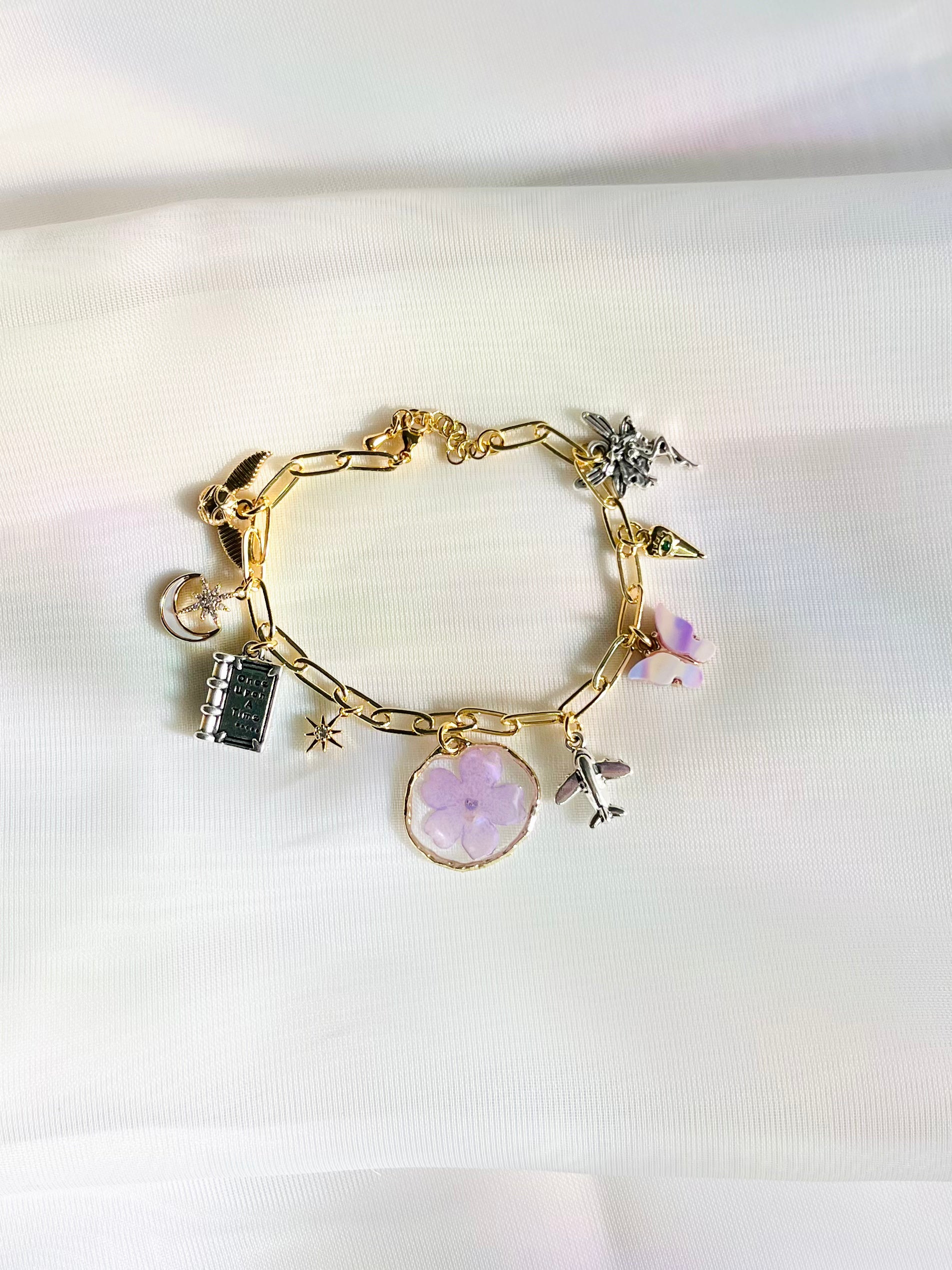 Choose between a number of enamel, resin, and gold plated charms to make your one of a kind, personalized charm bracelet.