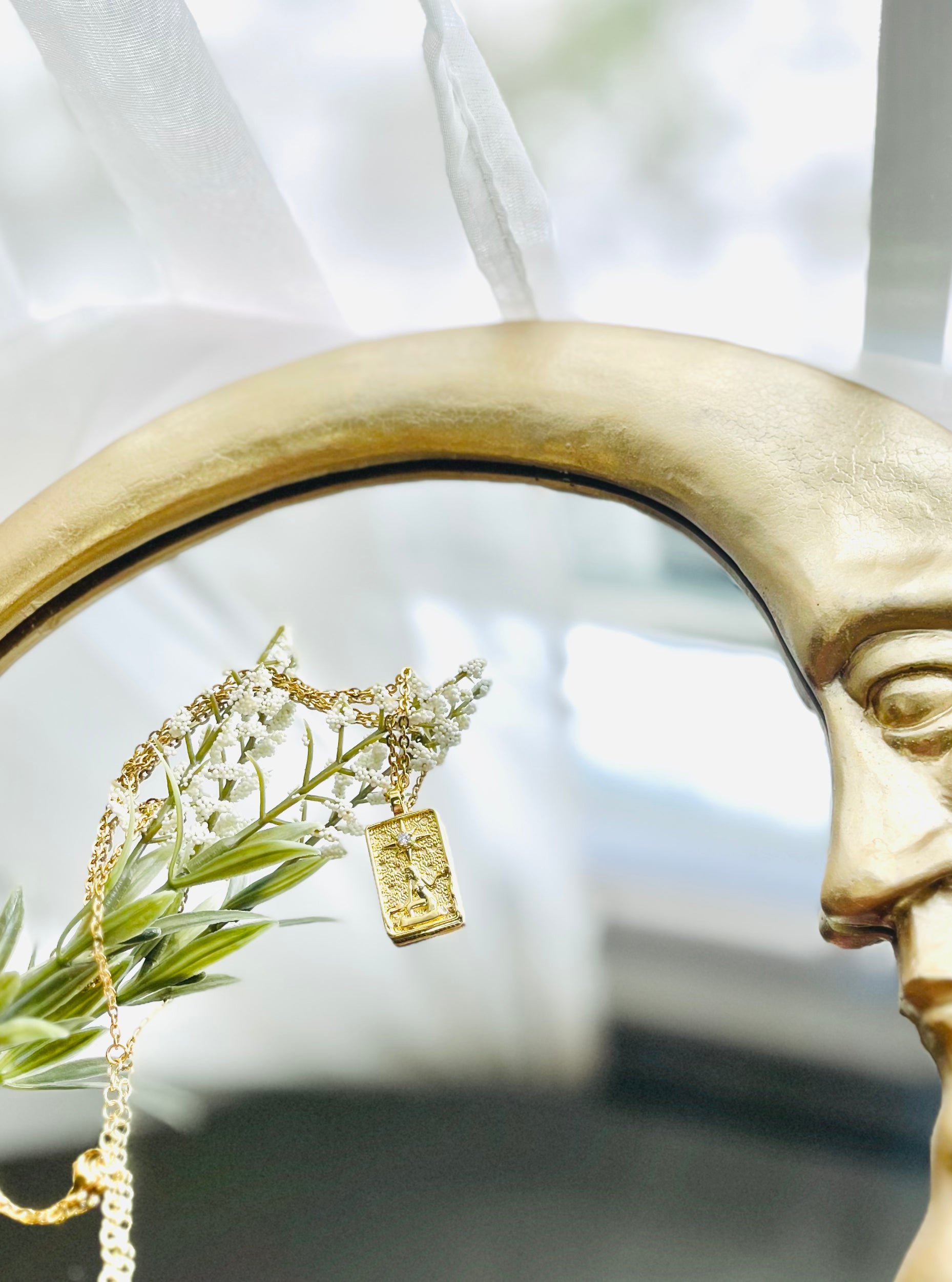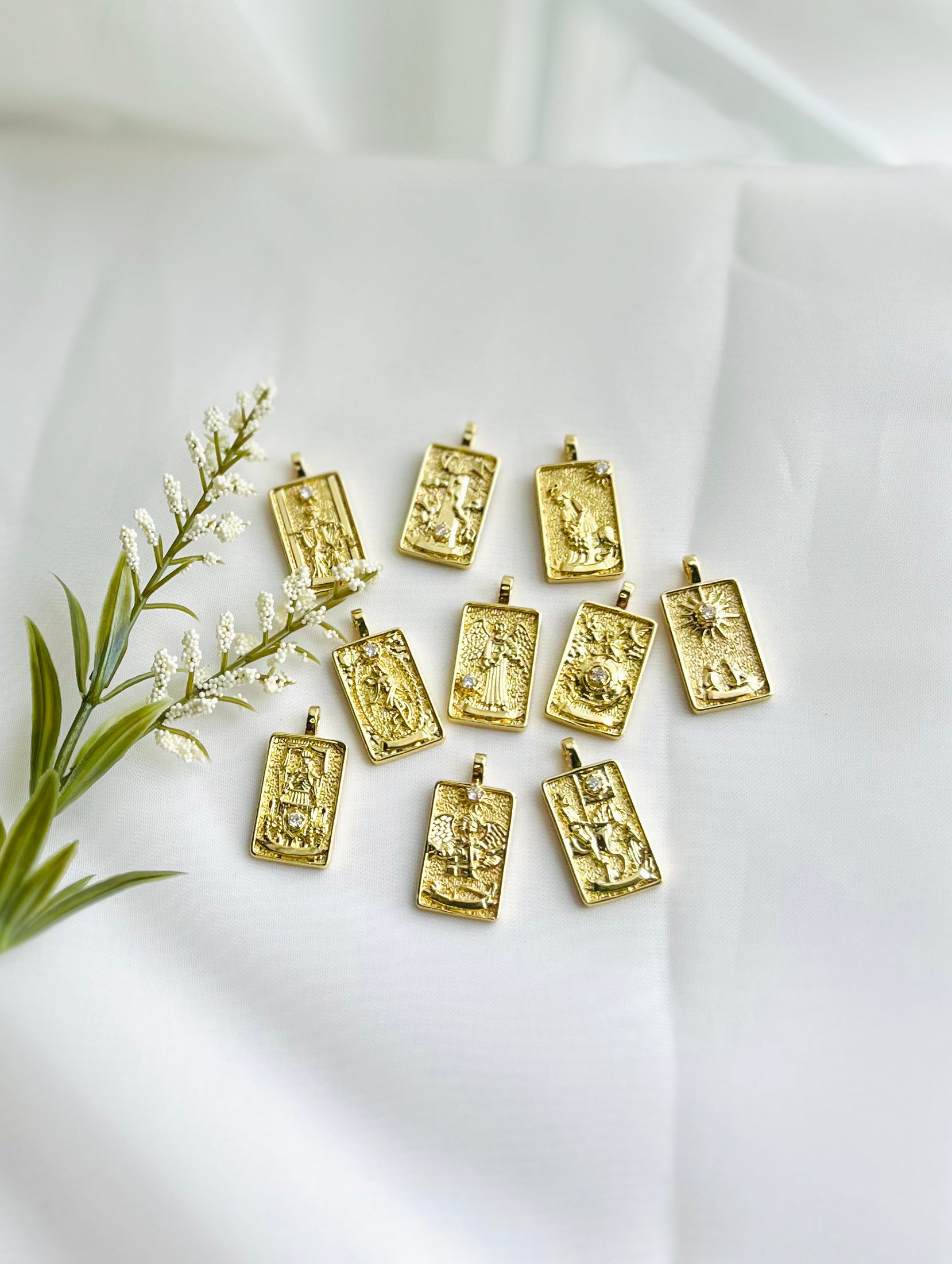 18k gold plated cubic zirconia tarot card on 18in gold plated chain w/ 2in extender