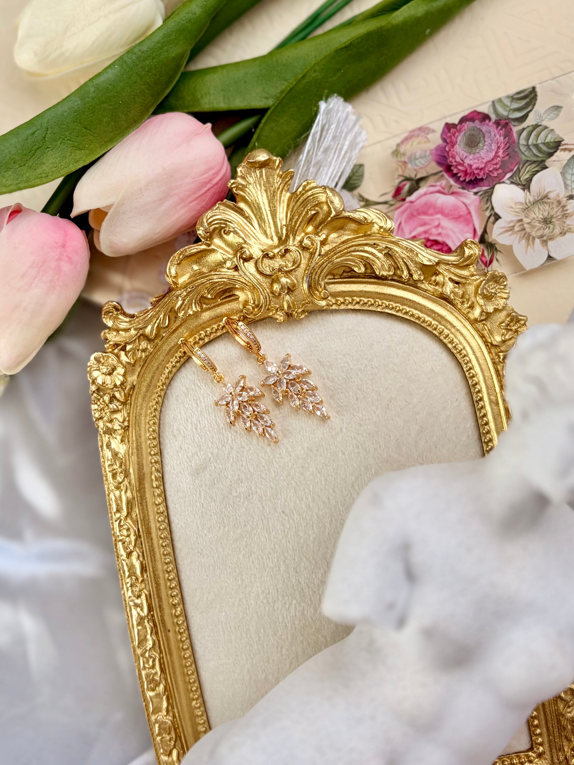 18K Gold Plated Cubic Zirconia "Kingsflame" Inspired Earrings from Throne of Glass Series on 18K Gold Plated Hypoallergenic cubic zirconia Huggie Hoops